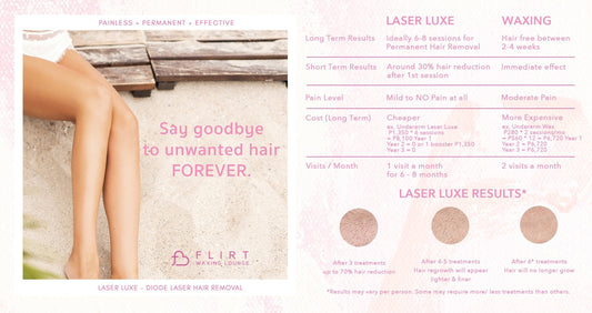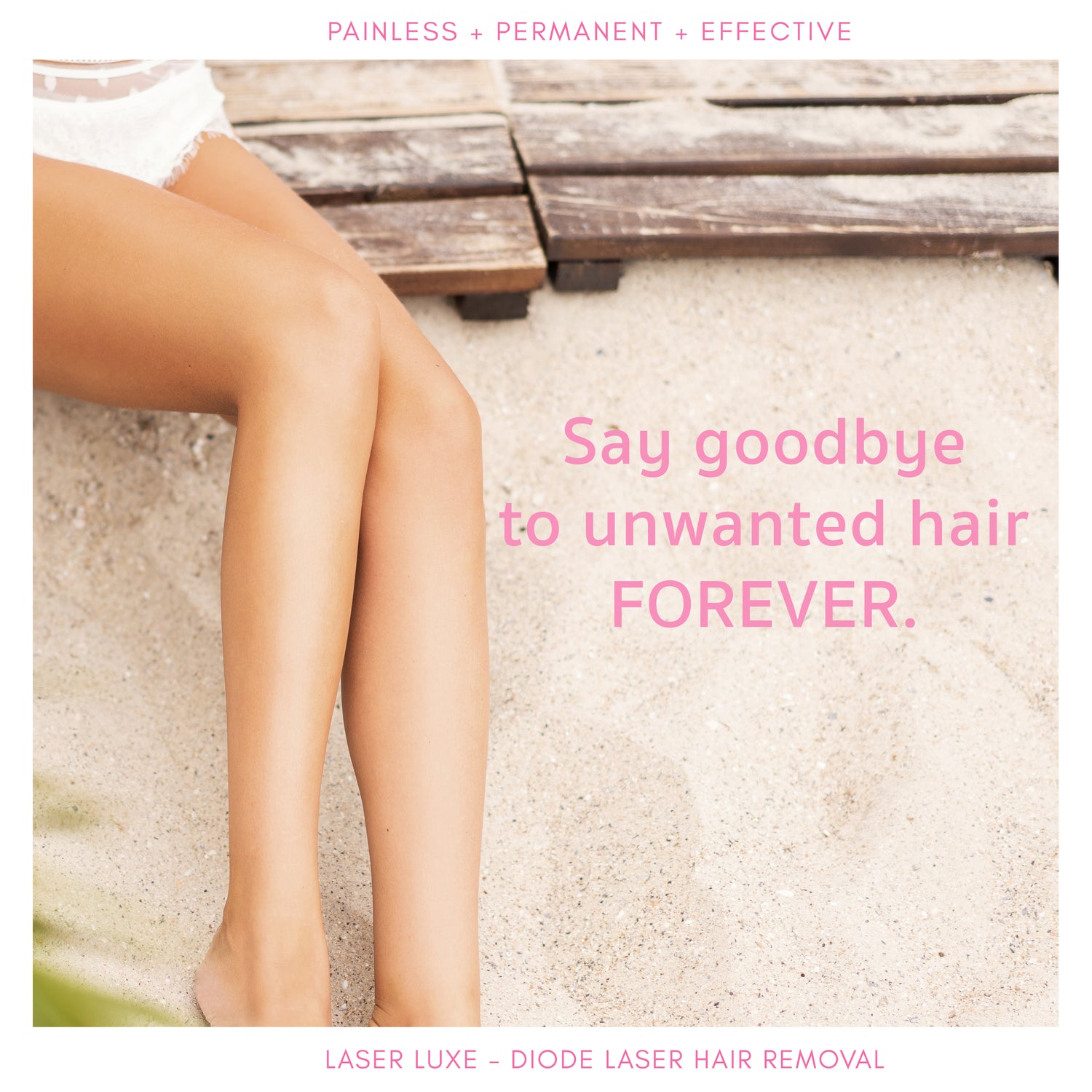 Laser Luxe uses diode laser machine to permanently remove unwanted hair after 4-6 sessions. You will see the results after your 1st session.